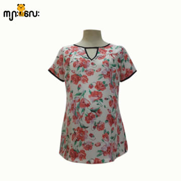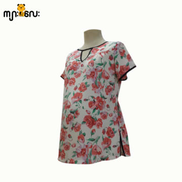 ( Medium Size ) Chiffon Red Flower Circle Design Blouse