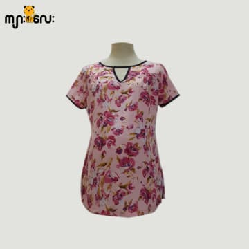 (Small Size ) Chiffon Pink Flower Printed Design V -...