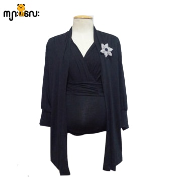 (Small Size) Stretch Black Long Cardigan With Flower...